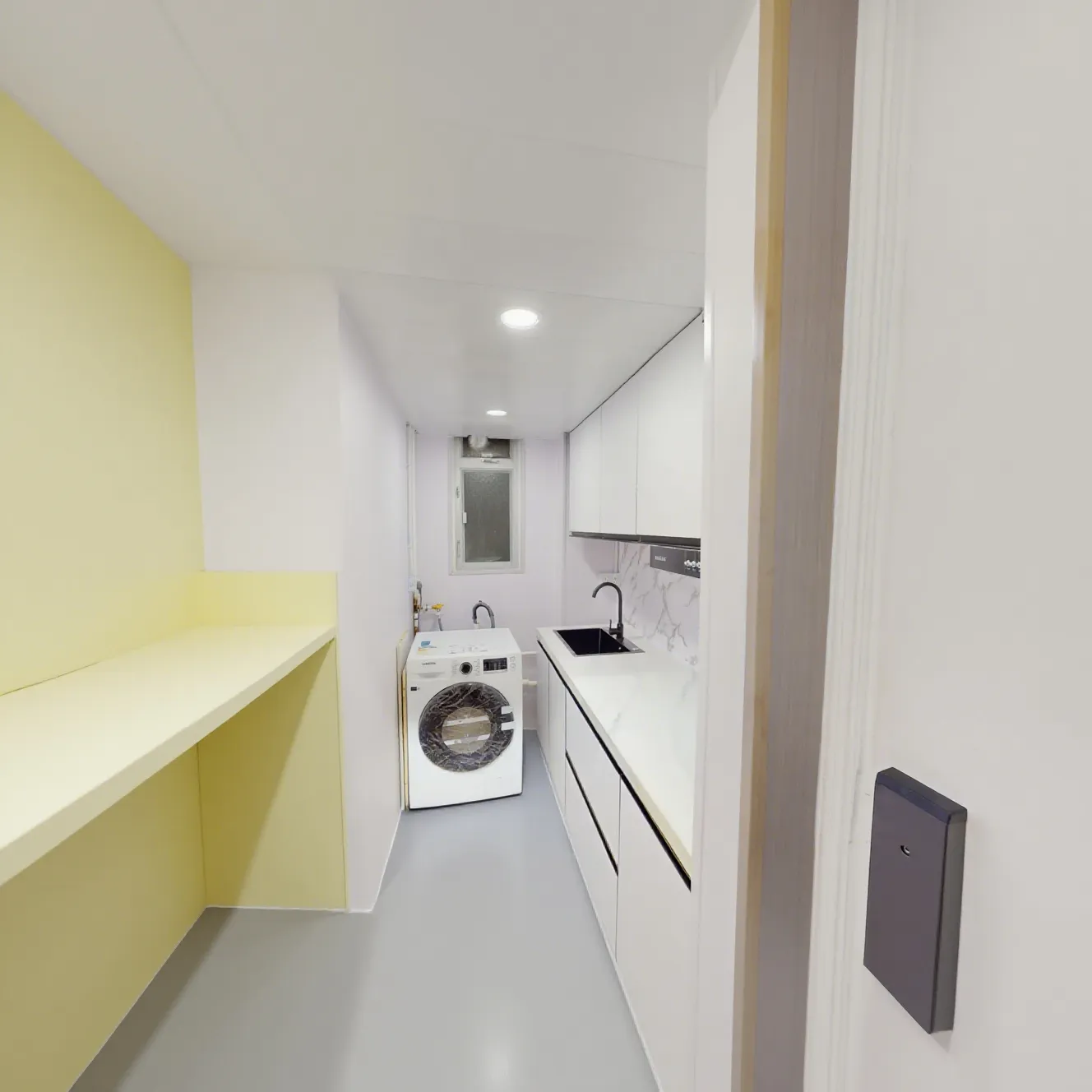 total. The unit has a kitchen, three bathrooms, and a shared dining table.